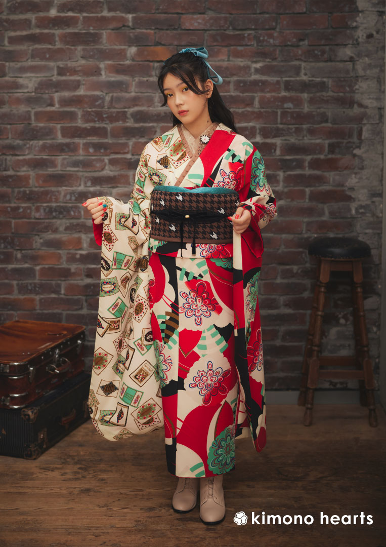 アンティークのトランプ柄とハイカラでポップな花柄で、お洒落に胸躍るおめかしさんへ。