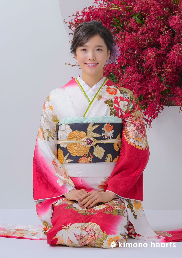 縁起の良い紅白の振袖で、成人の日を盛大に祝いましょう。