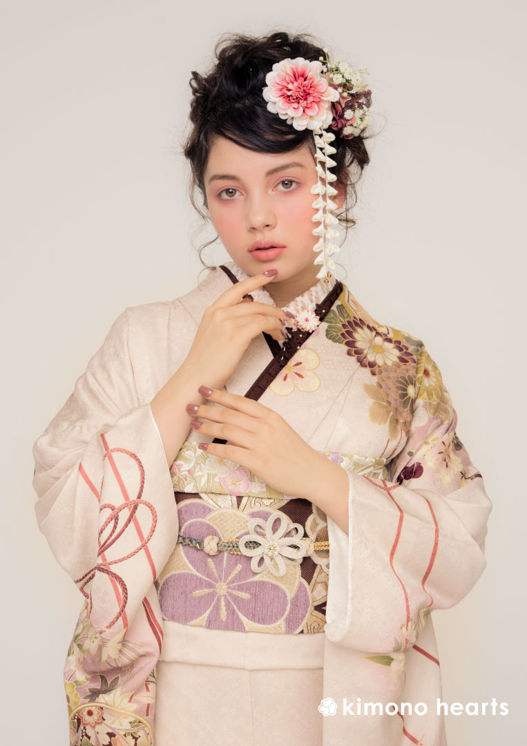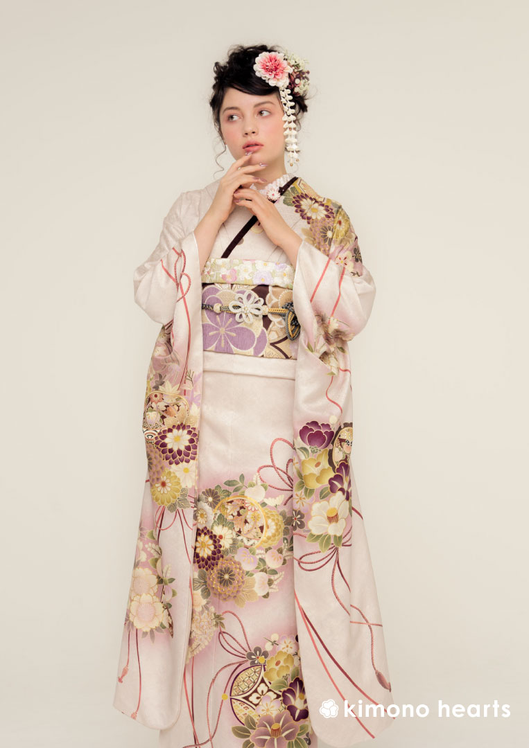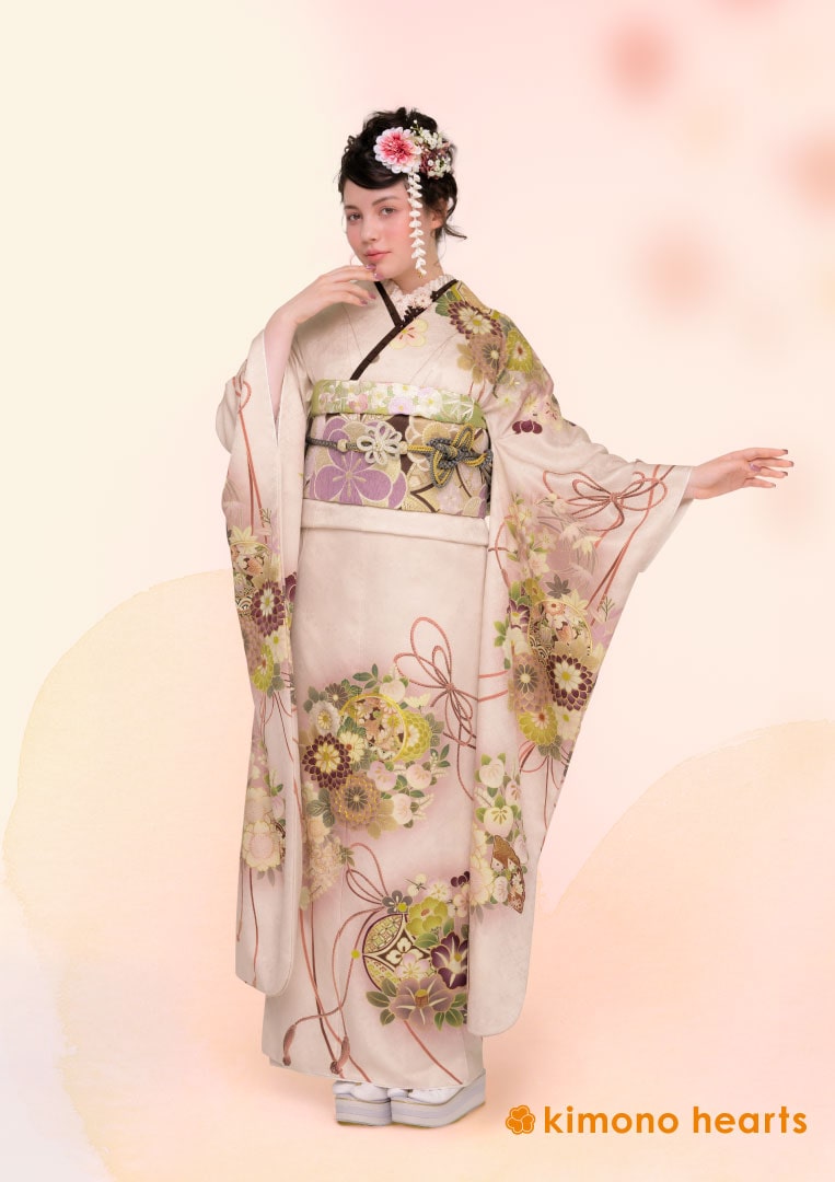 リボンは縁を結ぶことを連想させる開運モチーフ。優しい気持ちになれる振袖を纏って、優しい人たちとの縁を繋げていきましょう。