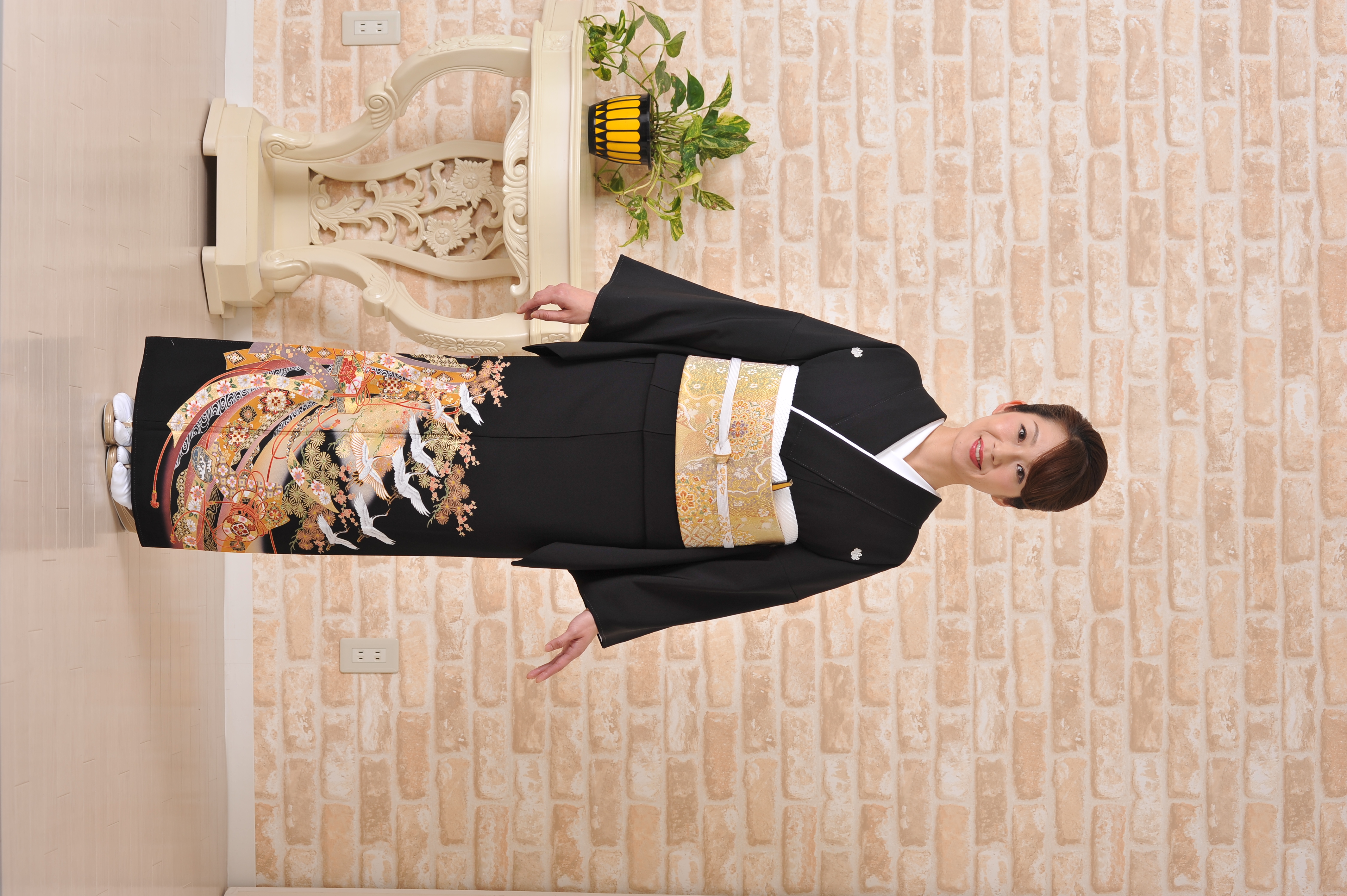 留袖と帯、着付けに必要な小物まで一式揃ったレンタルセットです。最高級丹後ちりめんの生地を使用し「のしに鶴 松」と題されたこちらの作品。のしに鶴と松をあしらったおめでたい図柄で格調のある古典模様です。