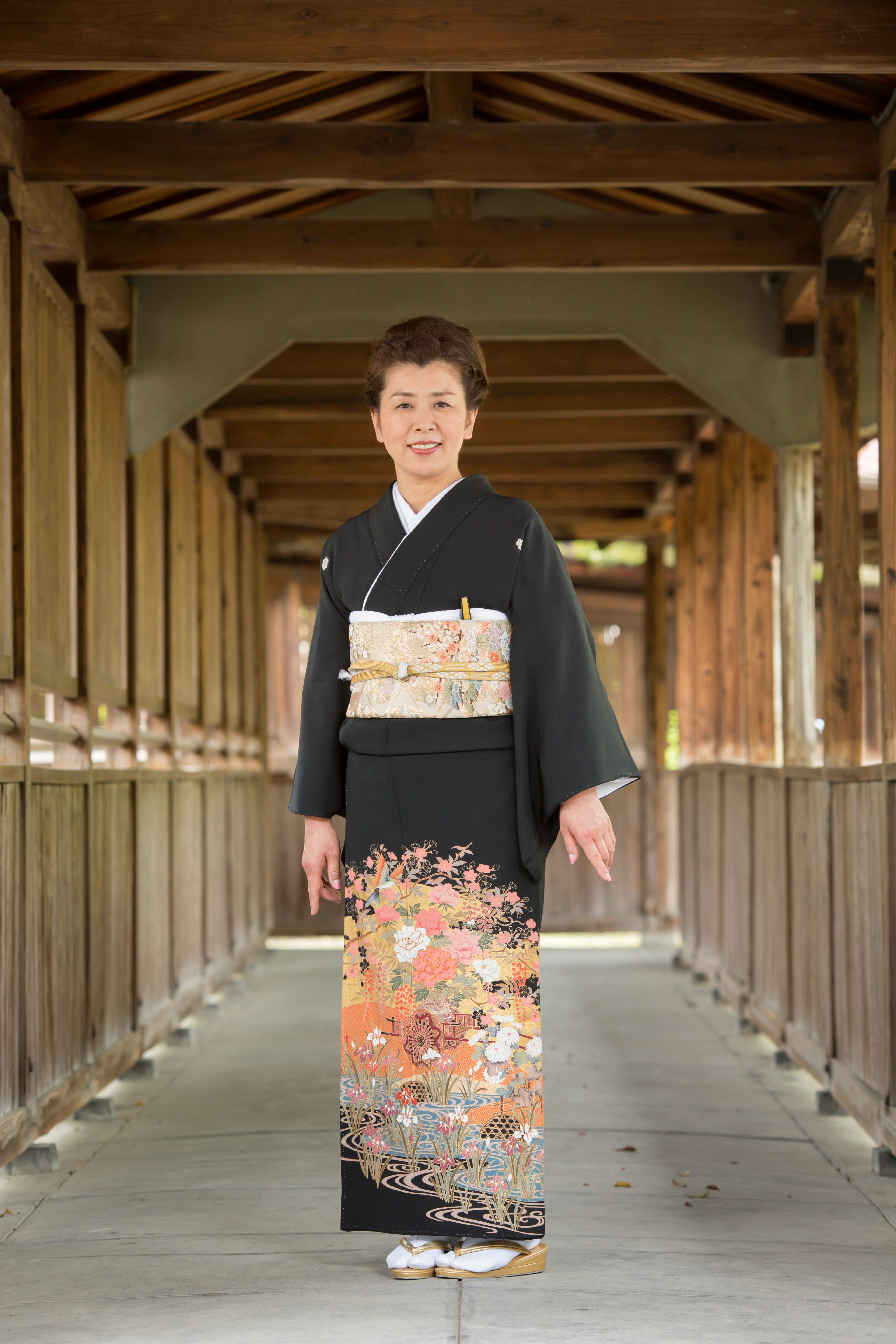 留袖と帯、着付けに必要な小物まで一式揃ったレンタルセットです。高級丹後ちりめんの生地を使用し「花車にあやめ」と題されたこちらの作品。流水にあやめ、花車には菊、藤、桜、牡丹など四季の花々が描かれ豪華さのある華やかな留袖です。