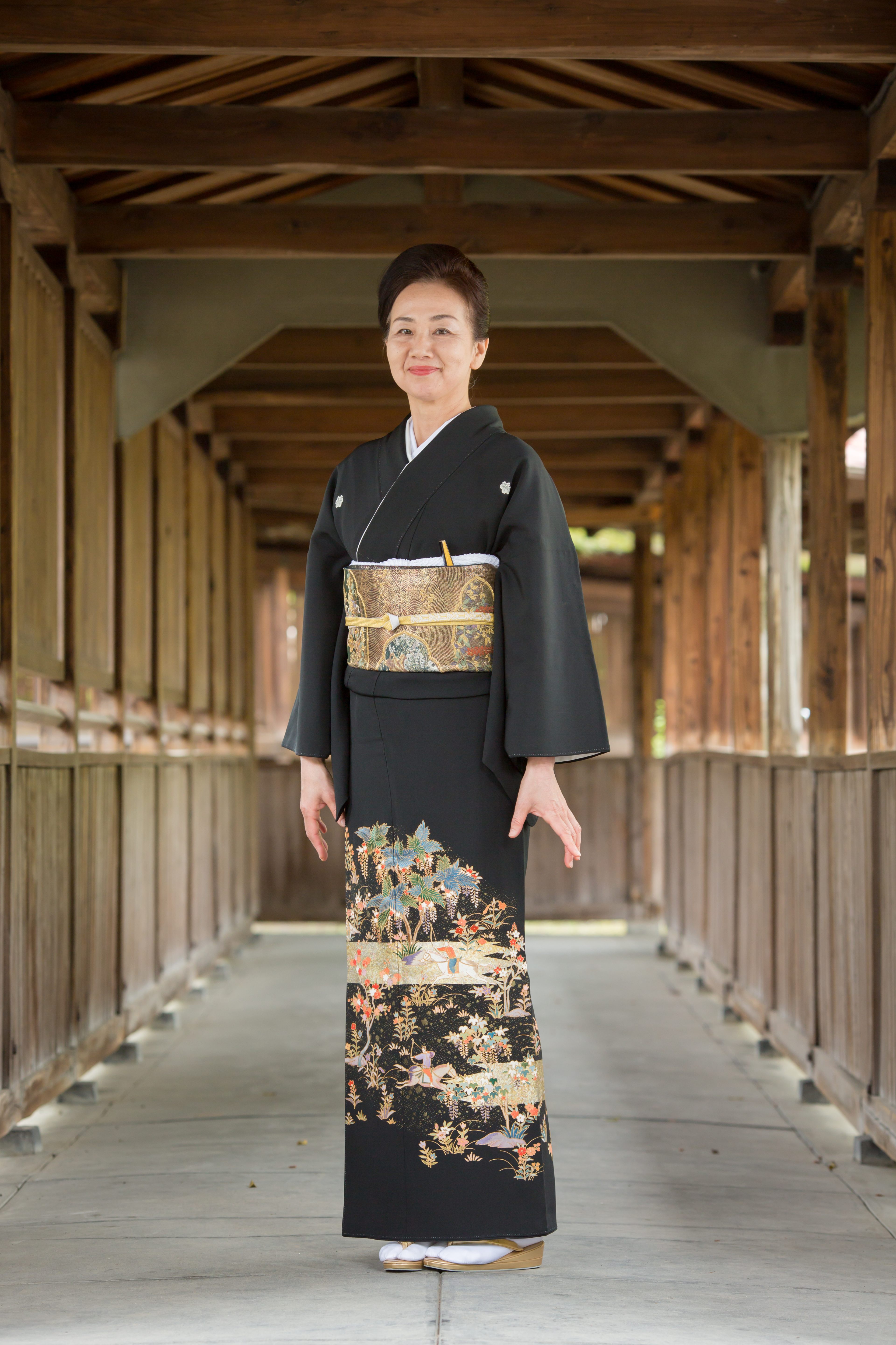 留袖と帯、着付けに必要な小物まで一式揃ったレンタルセットです。高級丹後ちりめんの生地を使用し「金通し 蘇鉄」と題されたこちらの作品。金通しに馬や蘇鉄の図柄は斬新で個性的かつ華やかな配色と構図はお召しになる方の個性を際立たせます。