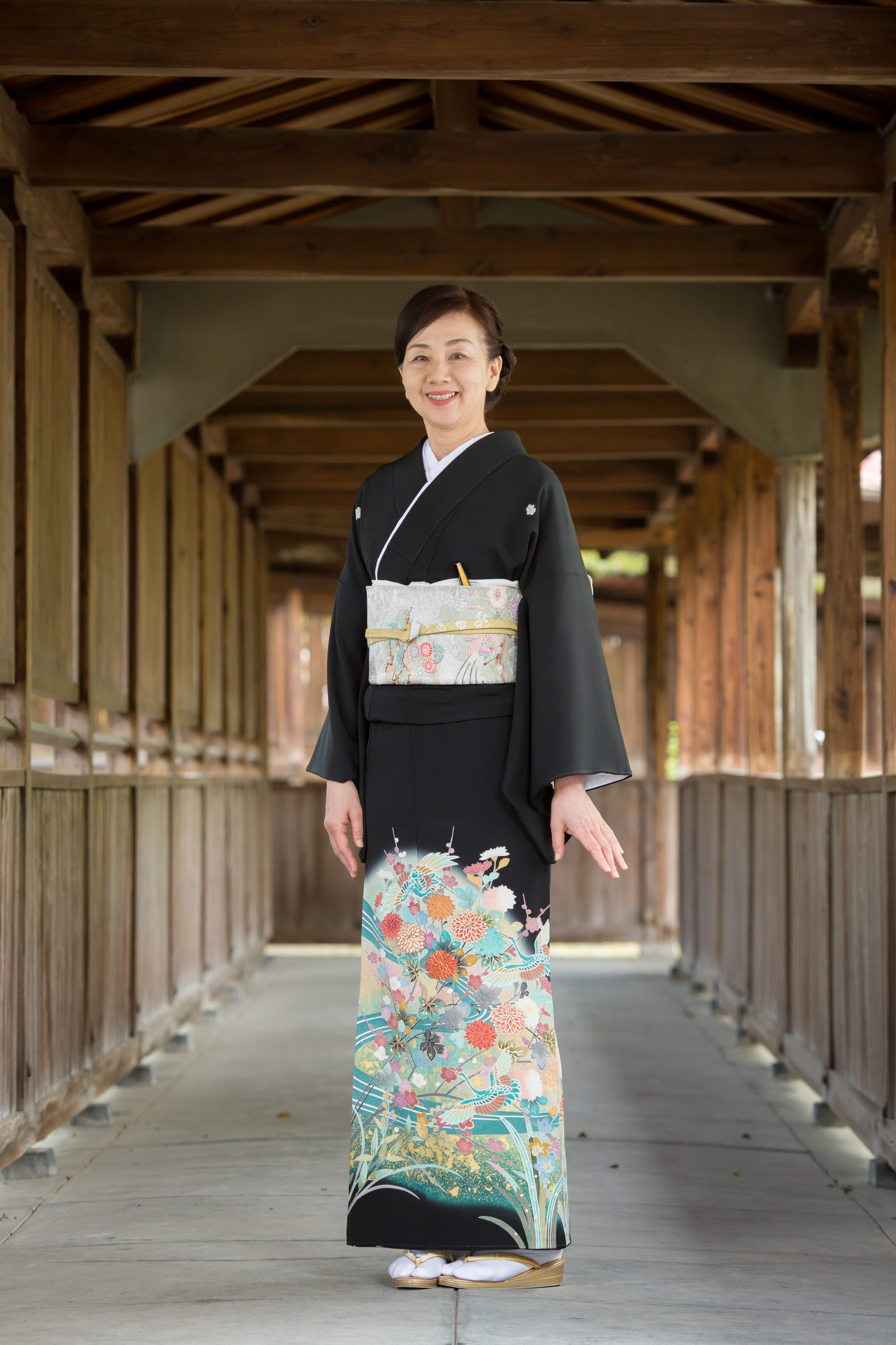 留袖と帯、着付けに必要な小物まで一式揃ったレンタルセットです。最高級丹後ちりめんの生地を使用し「鶴に水流花」と題されたこちらの作品。金箔のろうけつ染めをバックに、鶴、色とりどりの花を描き、加賀調の色彩で上品の留袖となっております。