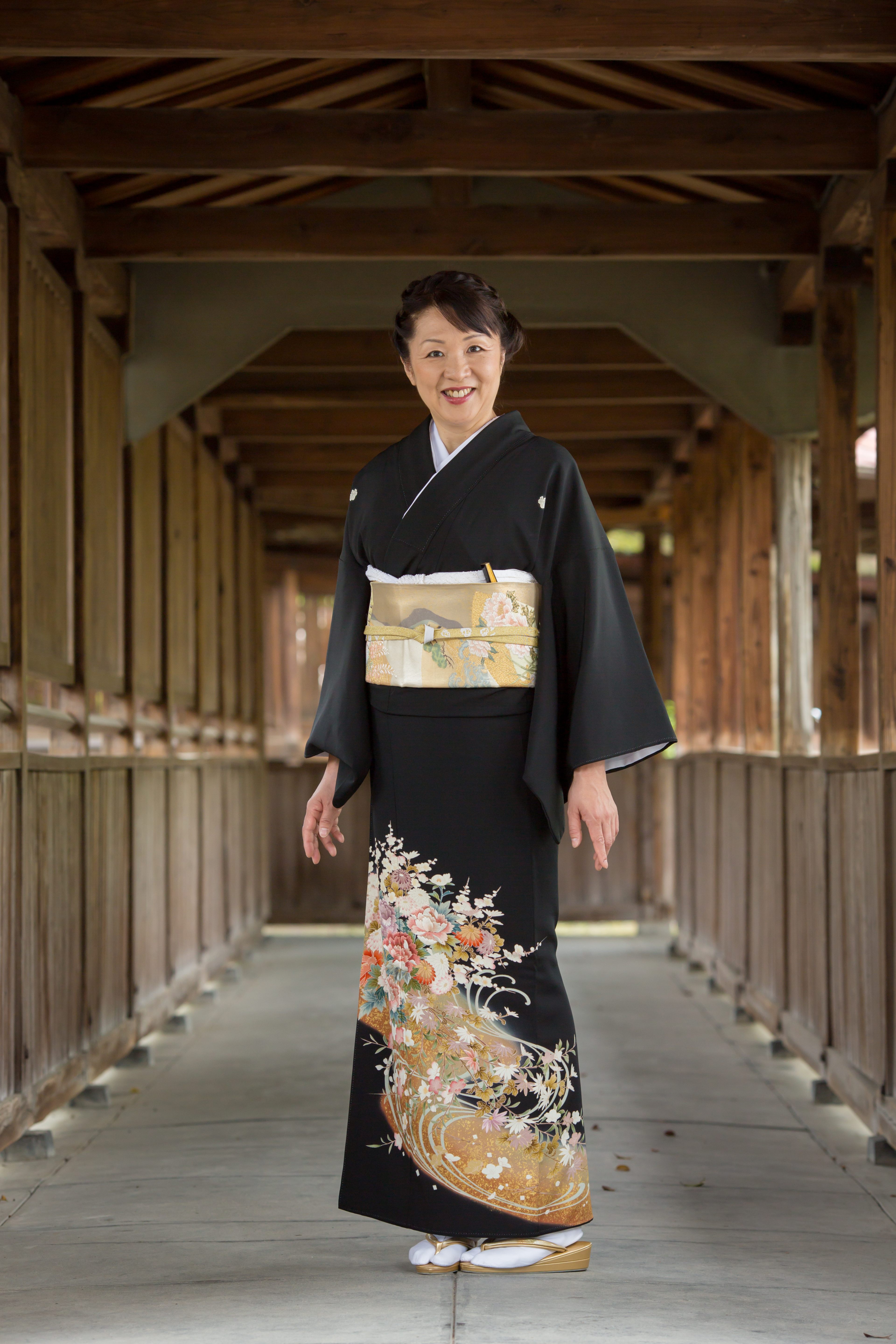 留袖と帯、着付けに必要な小物まで一式揃ったレンタルセットです。「箔暈し 流水に牡丹」。雄大な金箔流水に四季の花々が流れる様にあしらわれ、ポイントの牡丹の花には豪華な刺繍がほどこされています。おめでたい結婚式に花を添える柄となっております。高級正絹を使用したお着物です。