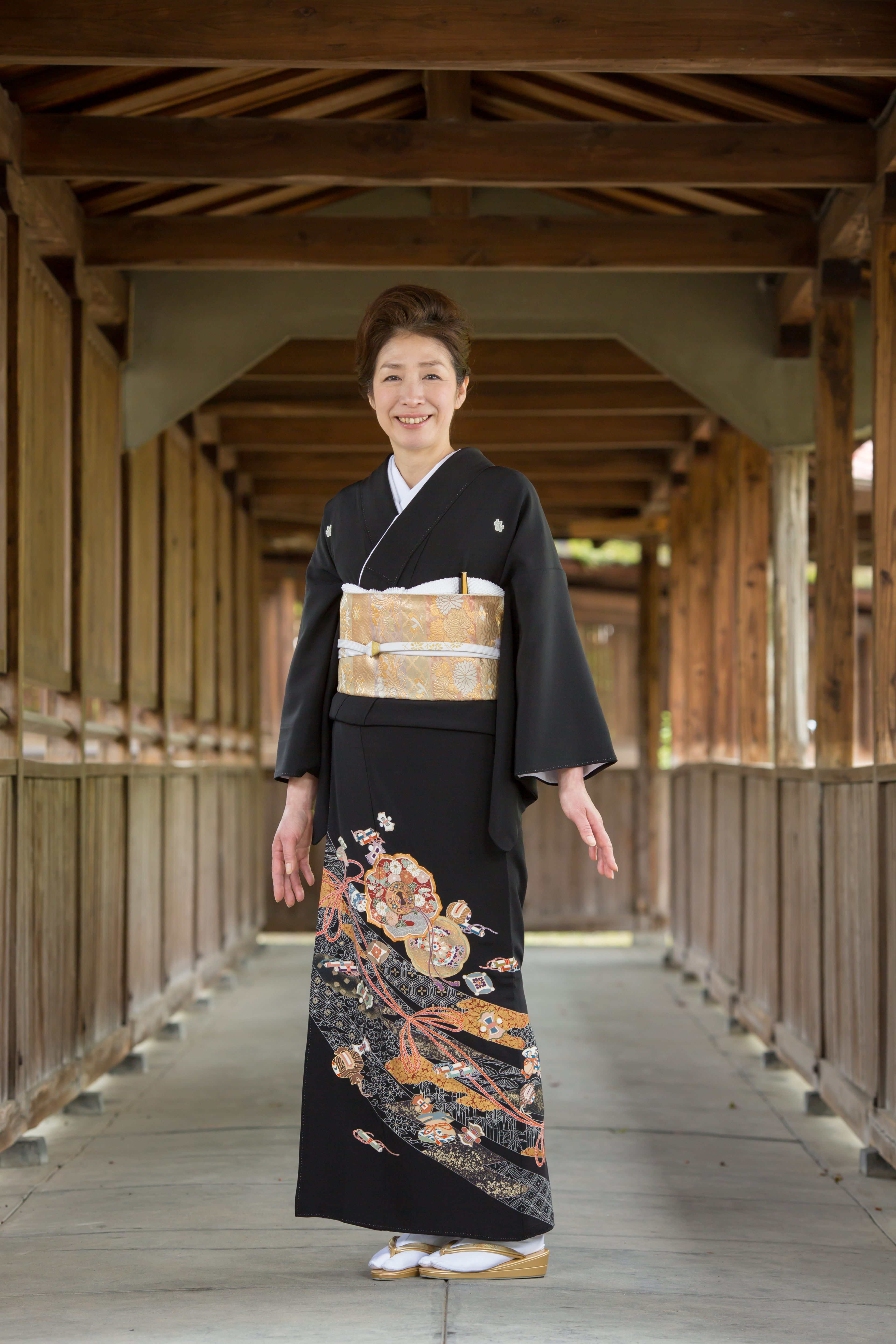 留袖と帯、着付けに必要な小物まで一式揃ったレンタルセットです。高級丹後ちりめんの生地を使用し「熨斗目 鏡 宝づくし」と題されたこちらの作品。熨斗目に描かれた花々や七宝などの模様が繊細さをアピール。おめでたい宝尽くしの模様や鏡が良き日に花を添えます。